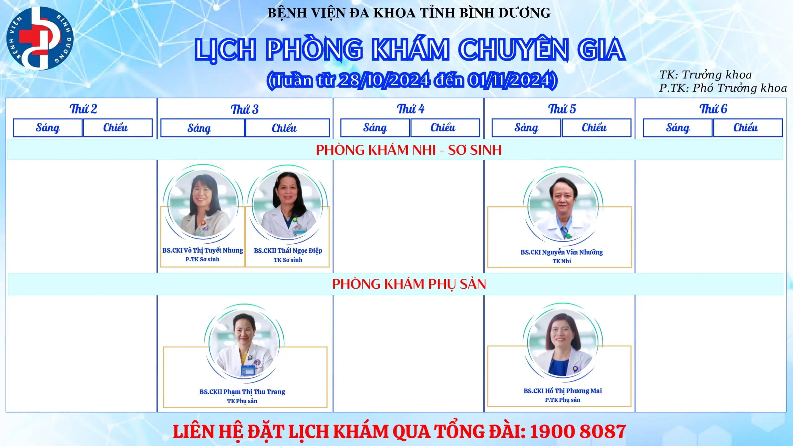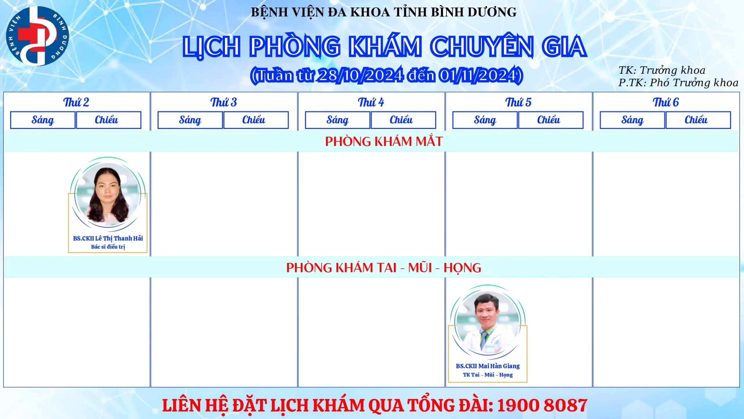 🌟🌟🌟LỊCH PHÒNG KHÁM CHUYÊN GIA BỆNH VIỆN ĐA KHOA TỈNH BÌNH DƯƠNG.