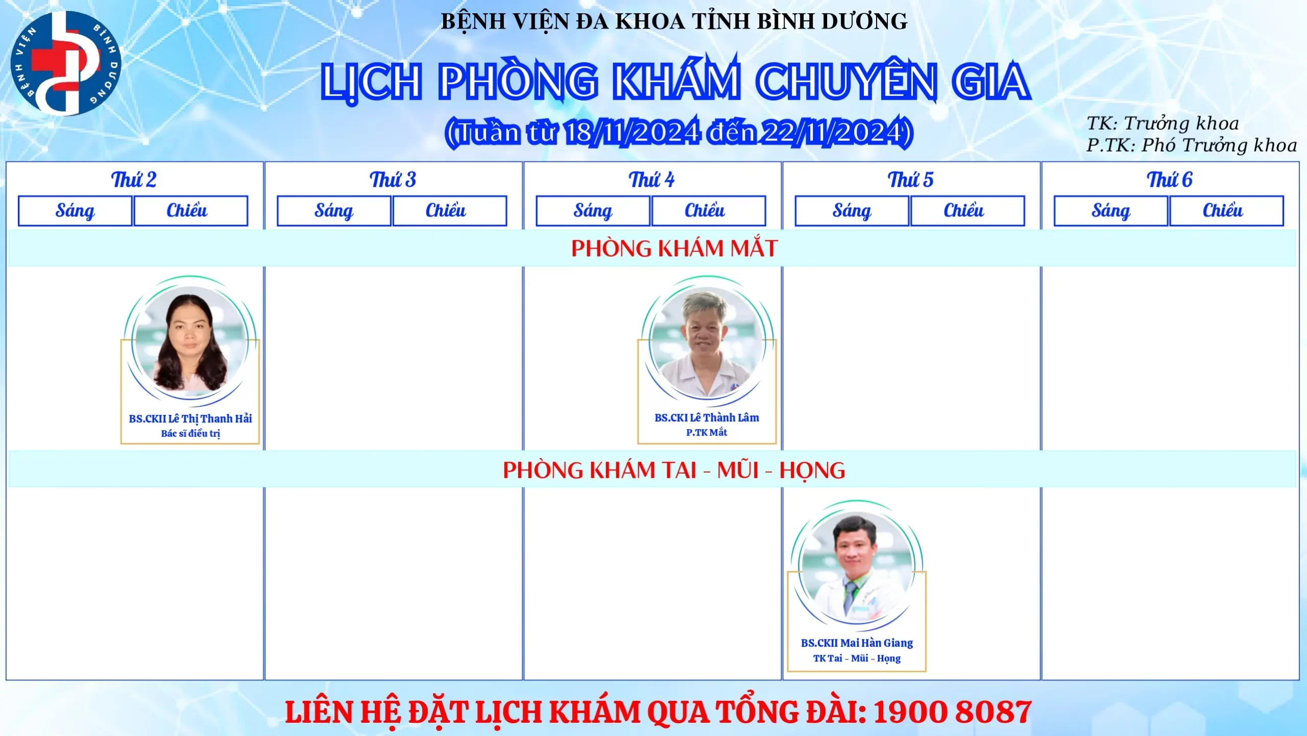 🌟🌟🌟LỊCH PHÒNG KHÁM CHUYÊN GIA BỆNH VIỆN ĐA KHOA TỈNH BÌNH DƯƠNG.