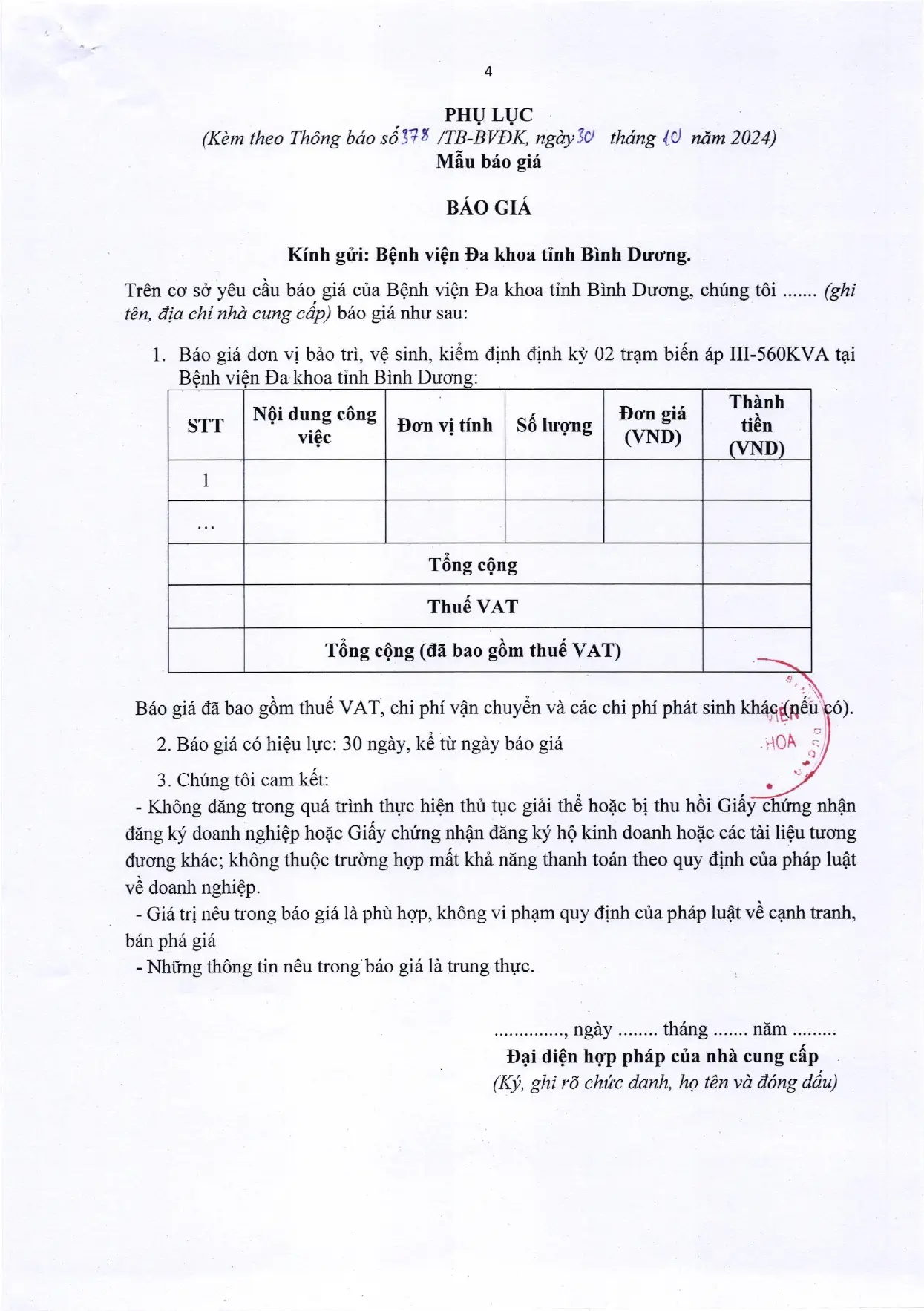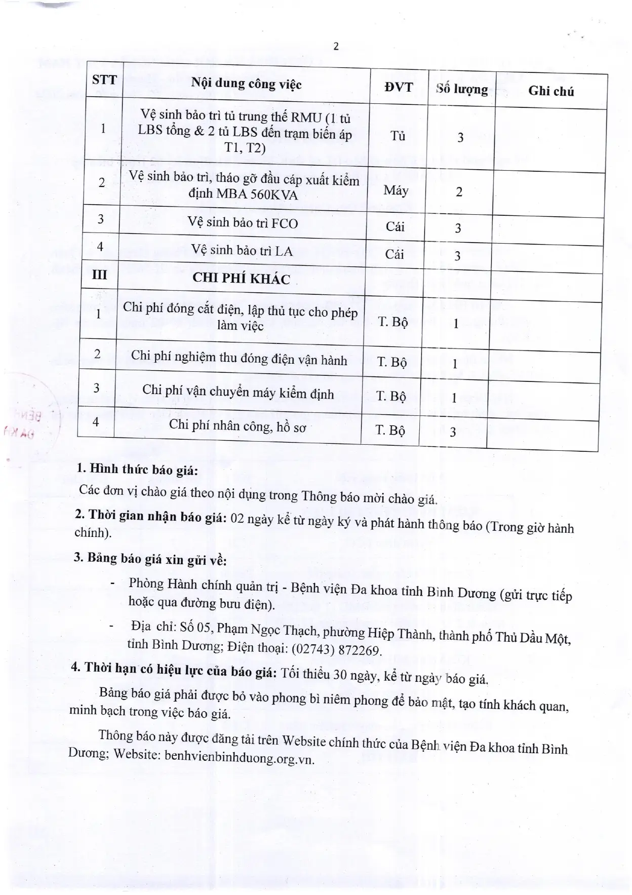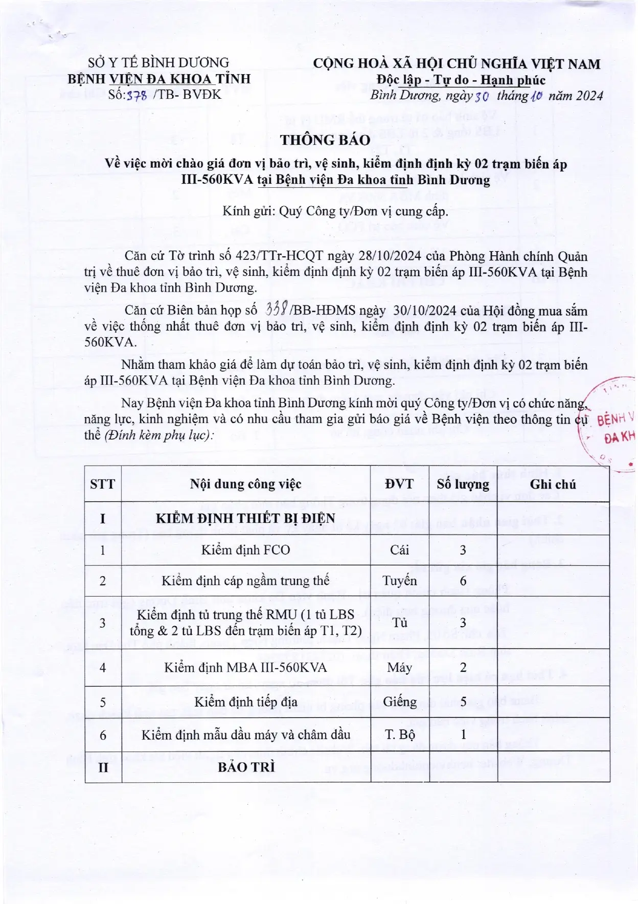 📣📣📣THÔNG BÁO MỜI CHÀO GIÁ (378/TB-BVĐK)