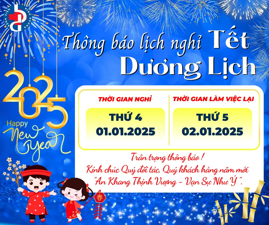 ♦️ Bệnh viện Đa khoa tỉnh Bình Dương trân trọng thông báo lịch nghỉ Tết Dương lịch 2025 đến Quý đối tác, Quý khách hàng như sau: ♦️ Trong thời gian nghỉ lễ, Bệnh viện chỉ tiếp nhận người bệnh Cấp cứu; không nhận khám bệnh và dịch vụ y tế thông thường khác. ♦️ […]