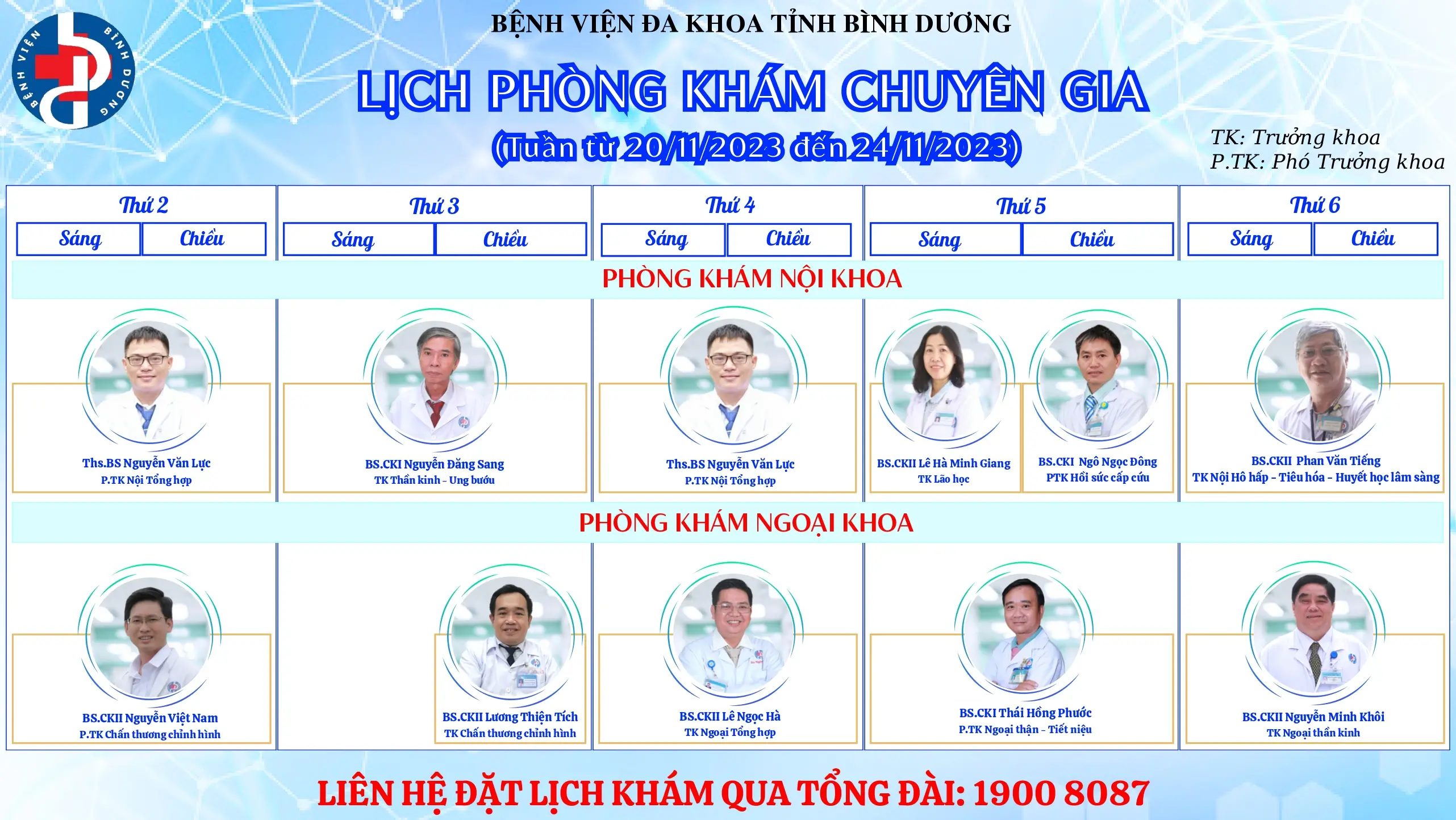 ♦️Lầu 1 – Khu khám dịch vụ – Khoa Khám bệnh ♦️Tuần từ 20/11/2023 đến 24/11/2023 ♦️Liên hệ đặt lịch khám qua Tổng đài: 1900 8087 (Trong giờ hành chính). ———————————————————————— 🏥 Bệnh viện Đa khoa tỉnh Bình Dương 🚑 Địa chỉ: Số 05, Phạm Ngọc Thạch, phường Hiệp Thành, thành phố Thủ Dầu Một, […]
