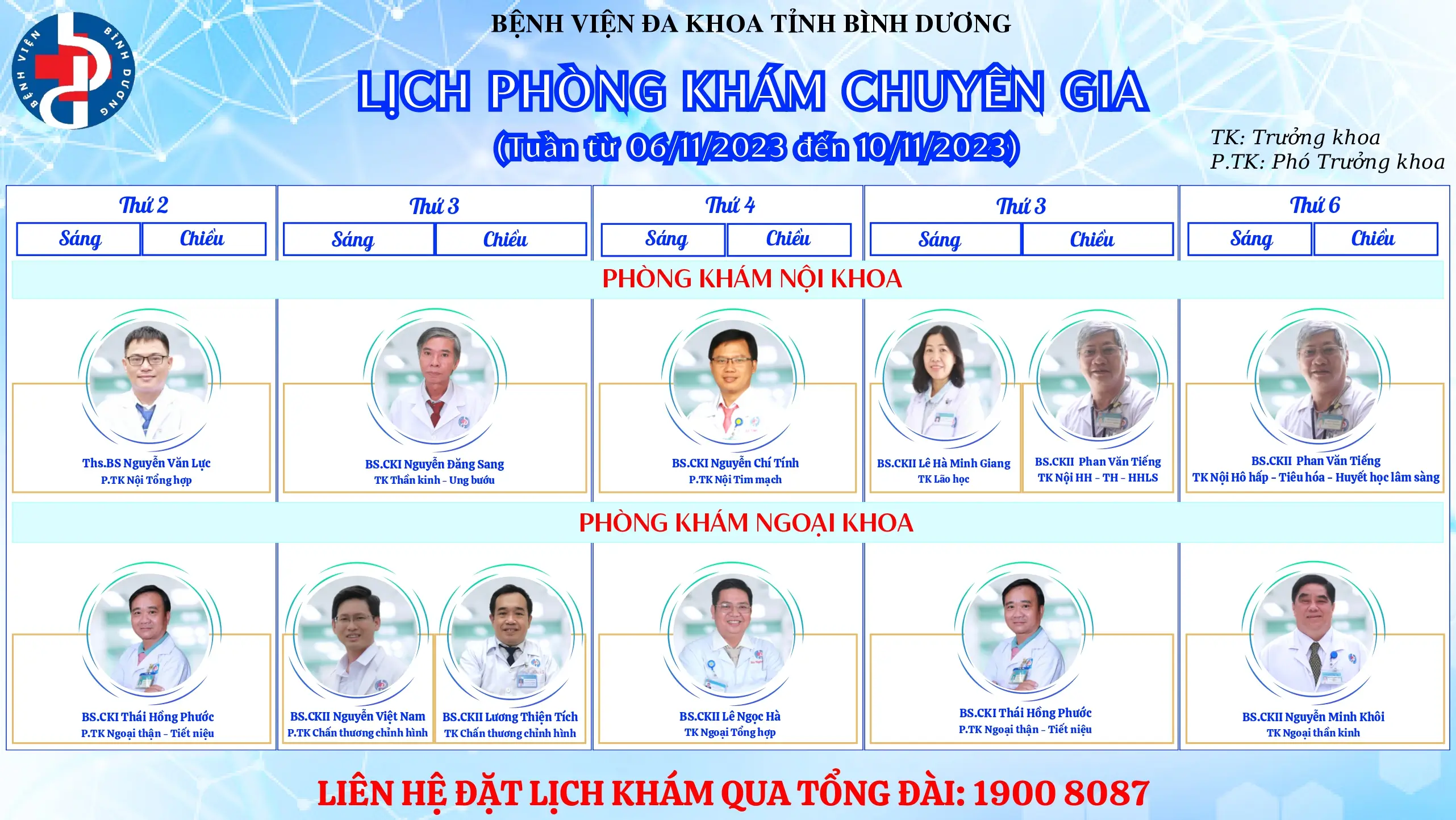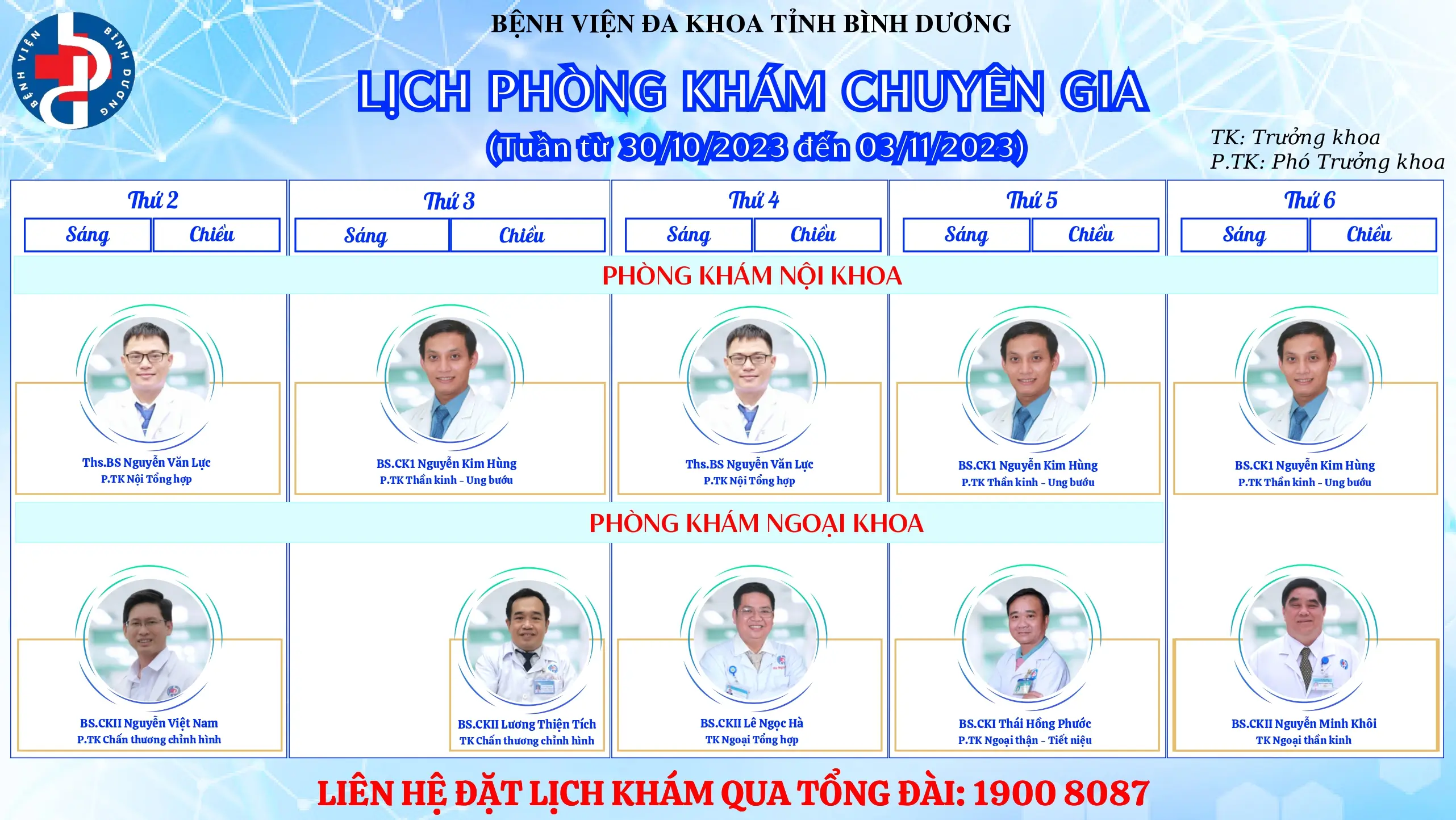 🌟🌟🌟LỊCH PHÒNG KHÁM CHUYÊN GIA BỆNH VIỆN ĐA KHOA TỈNH BÌNH DƯƠNG.