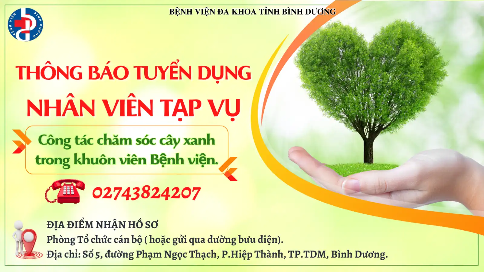 THÔNG BÁO TUYỂN DỤNG – BỆNH VIỆN ĐA KHOA TỈNH BÌNH DƯƠNG